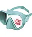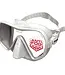 • Rahmenlose Einlinsenmaske aus gehärtetem Glas mit Silikon-Dichtungskörper für ein weites Sichtfeld.