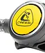 Compact and lightweight, the Cressi Zen Pro Octo delivers the same comfortable breathing experience as the Zen Pro 2nd stage, but in high-visibility yellow for easy identification in emergencies. Designed for cold-water performance, the Zen Pro Octo features a Thermoconductive Polymer case, which transfers warmth from the surrounding water or the diver’s breath to the internal components. This helps prevent ice buildup inside the Octo, especially during high breathing demand – such as during emergency use. The large purge button is easy to locate and operate when needed. The adjustable Venturi lets divers fine-tune airflow, reducing free-flows at the surface and during dives. Radial pressure openings evenly distribute water pressure across the diaphragm, further minimising the risk of free-flows and ensuring the Octo delivers air only when needed, even in strong currents. Built with a fail-safe downstream design, the Zen Pro Octo continues to deliver air even in the event of a malfunction, ensuring a reliable backup air source when it matters most. Maintenance is quick and cost-effective, with an ergonomic design that allows for easy disassembly and reassembly without specialised tools, reducing downtime and servicing costs.